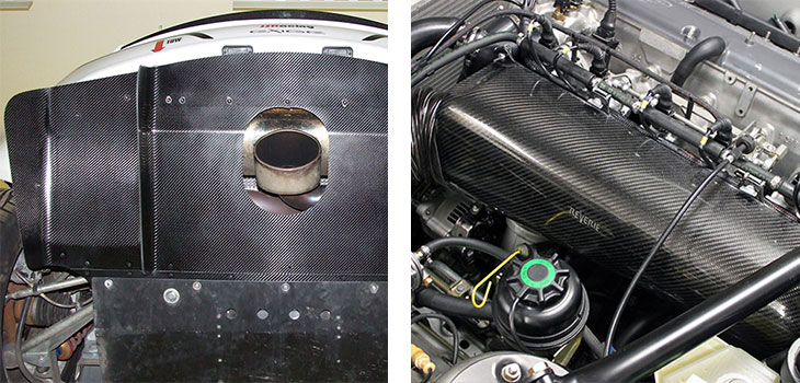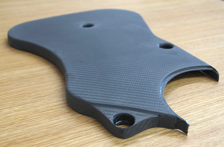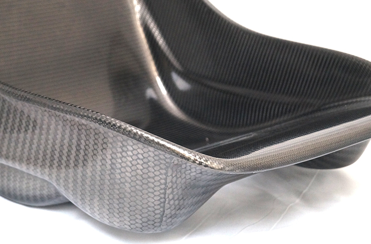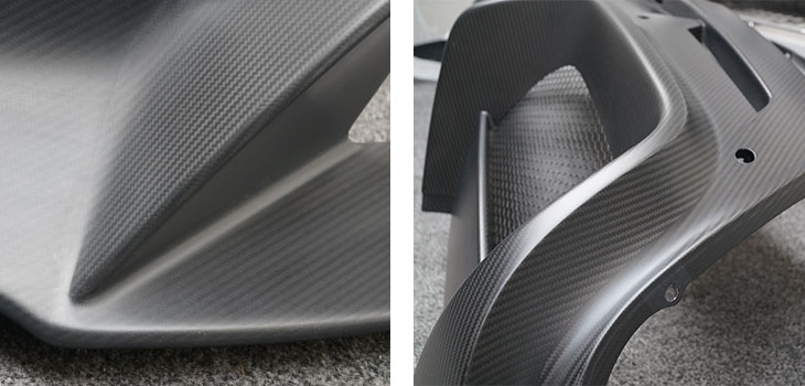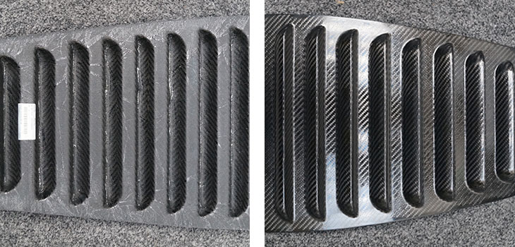 The images below of a Carbon Fibre bonnet vent shows the inside B-surface (left) and the polished A-surface (right);