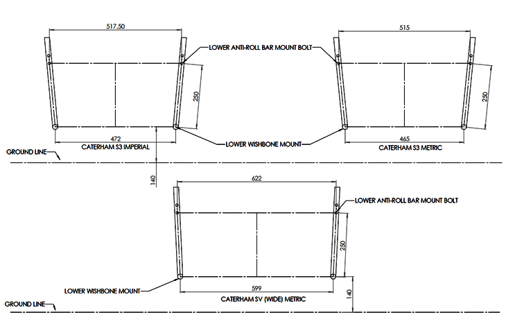 There have been many different models of the Caterham Seven since 1973 with different engine and chassis options. If unsure what product will fit your Caterham, please contact us before ordering stating your chassis type (S3 Imperial/Metric or SV), engine and throttle body/induction type so we can best advise you.