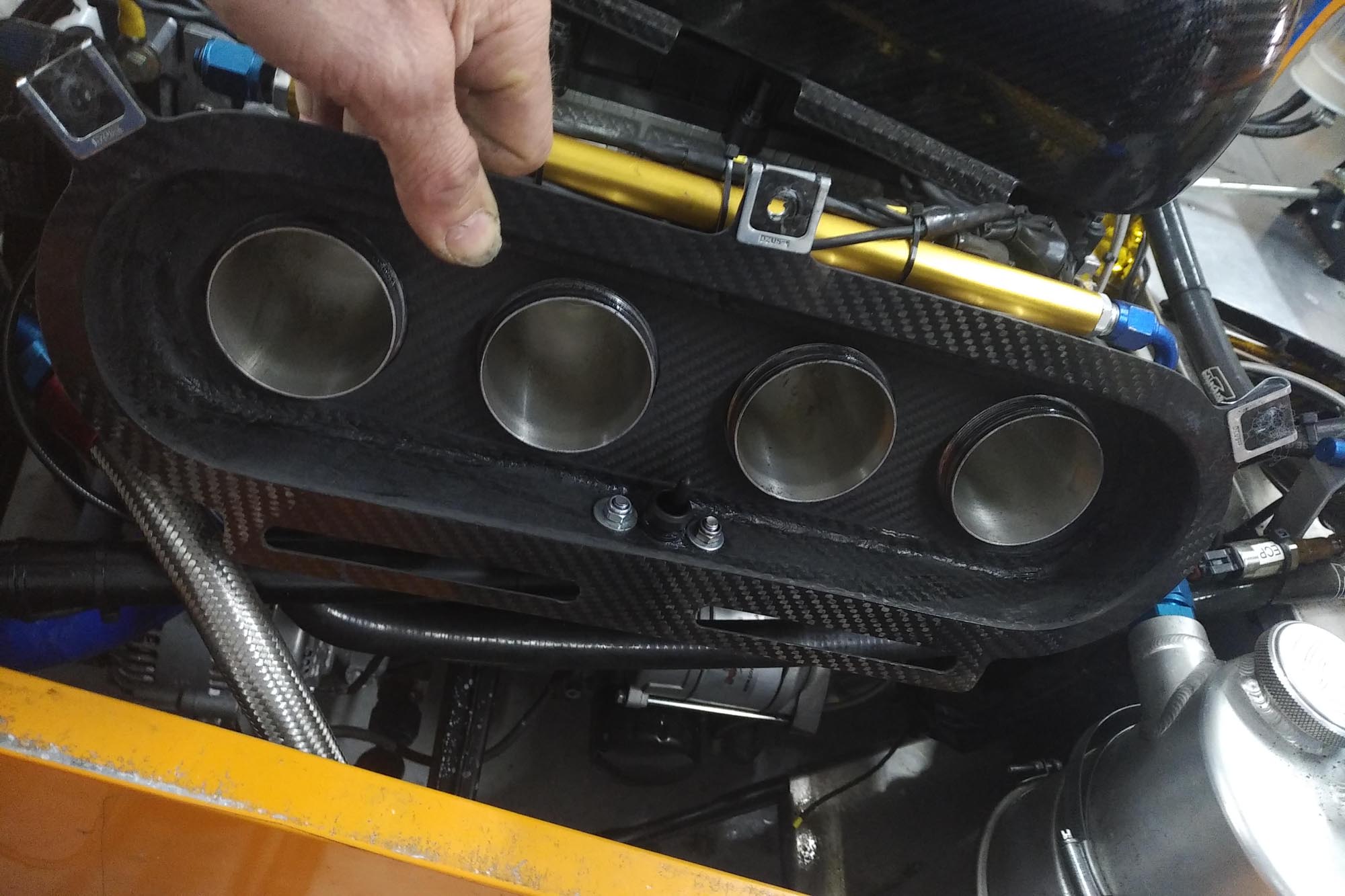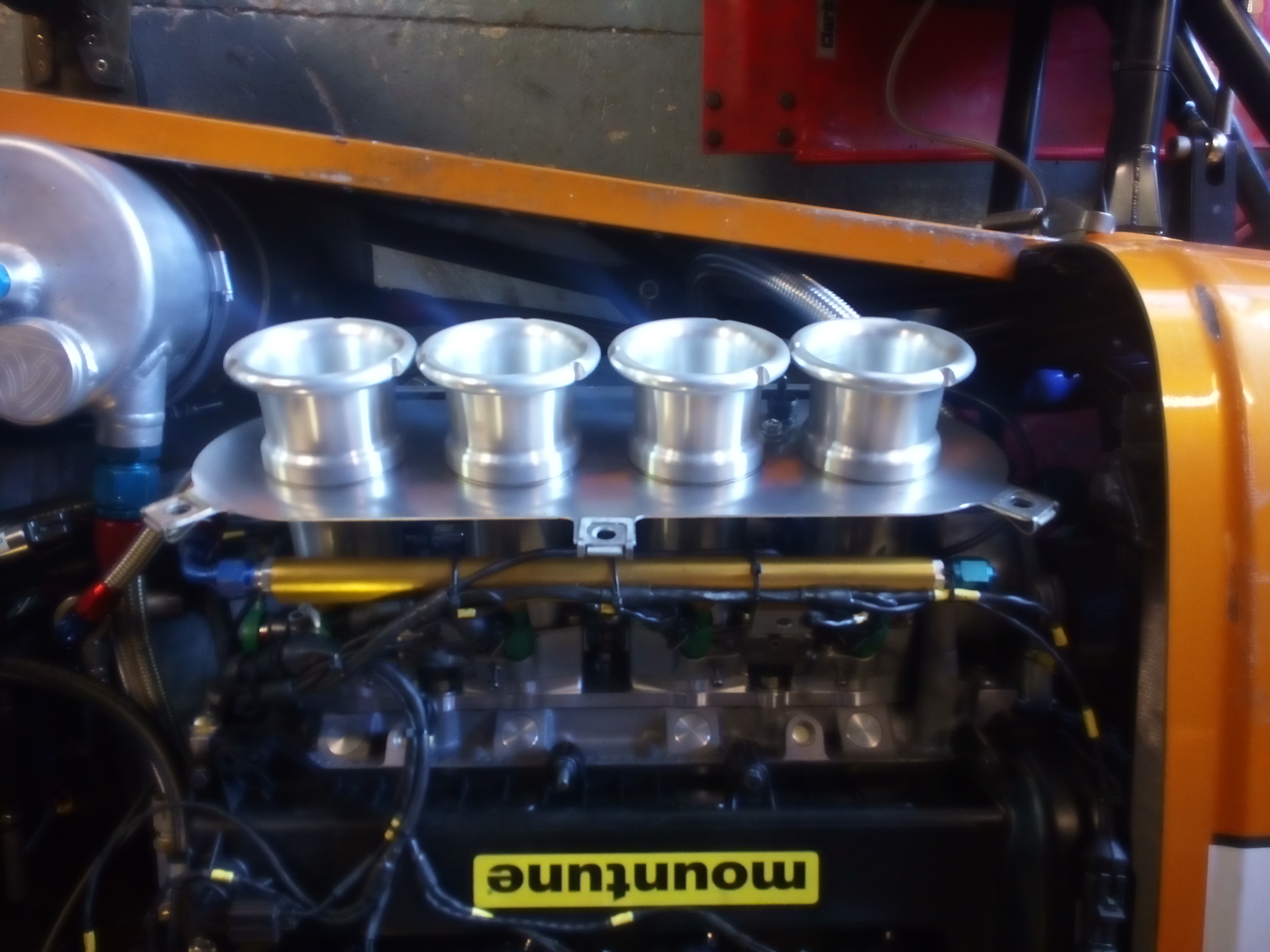 Shown here with AT power throttles and 30mm deep back plate, please check what depth of back plate you want and need, some cars have 60mm deep back plates fitted already. We do make and sell 90mm deep back plates to push the air box further out into the air stream or even angled back plates if needed (see tech drawings section for Zolder 150 airbox and Zolder PX600 back plates)