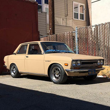 “1970 Datsun 510 with one of the shortest intake manifolds that was ever made (a Mikuni manifold, the other popular option was made by Cannon) for this engine, and the Zolder 65x aibox went on with a few cm to spare.”