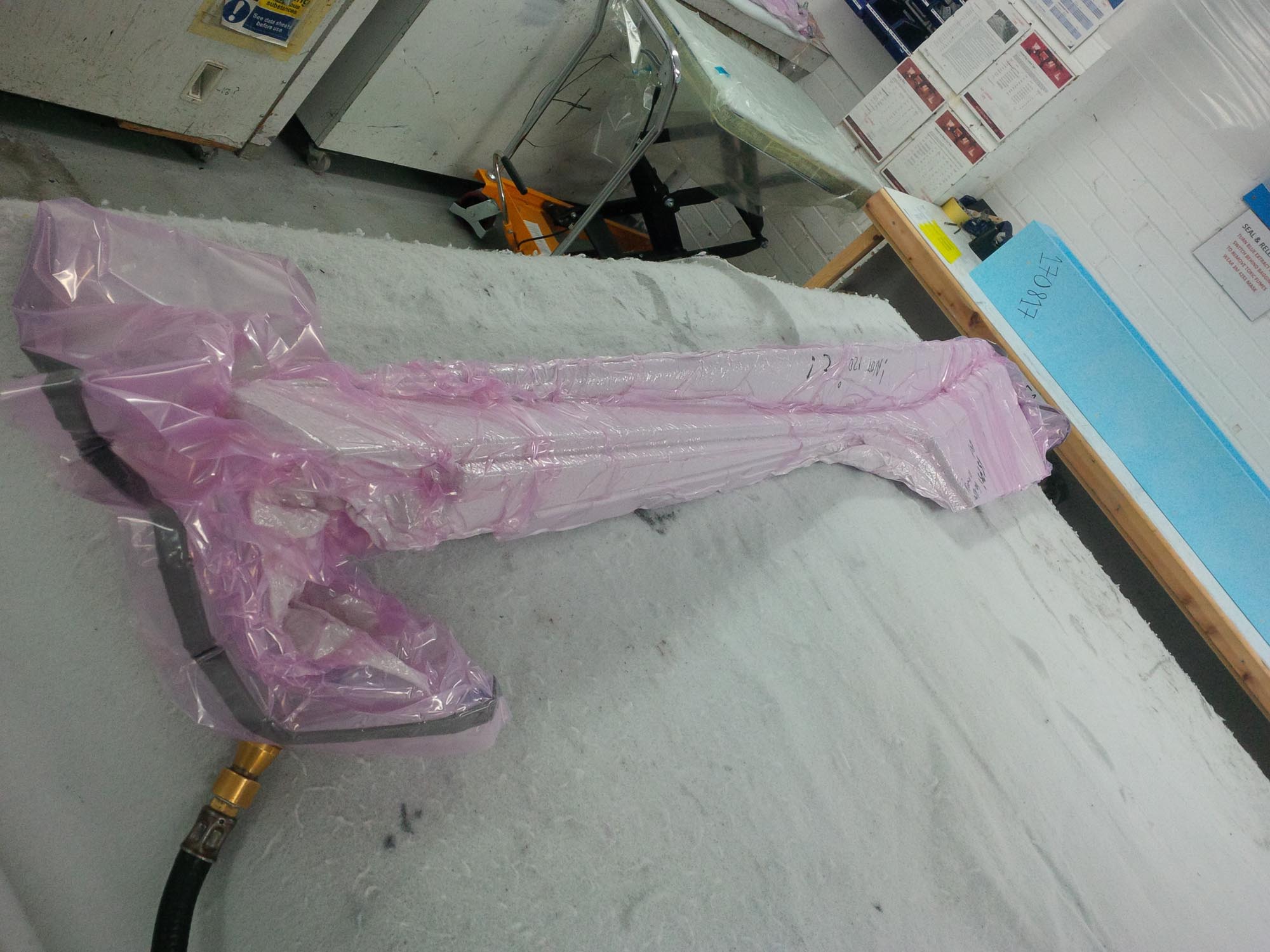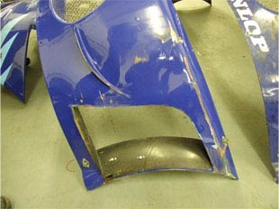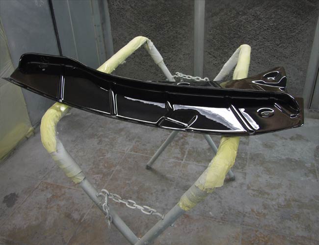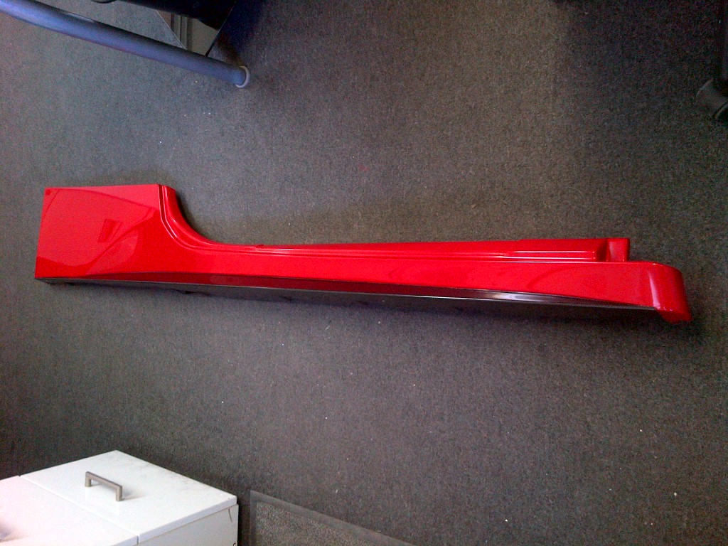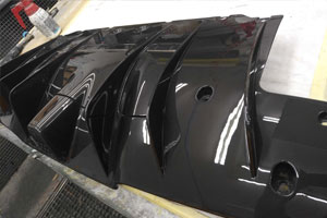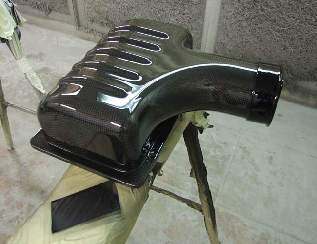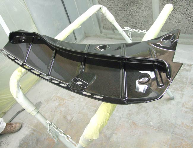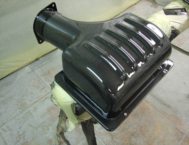 Re-lacquring Ferrari F450 Carbon Fibre panels and an air box using a Durepox clear epoxy urathane coat.