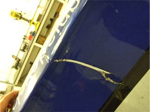 One diffuser vane badly curbed and damaged, was locally re-laminated with weave matching and clear coated and polished to effect non visible repair;