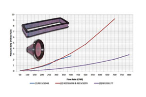 Data for our induction kit filters includes overall dimensions and flow rate (CFM) graph for comparison. Information about intake sizing is also included in the data sheet. Data of all our cotton gauze filters is available including K&N air filters we supply.
