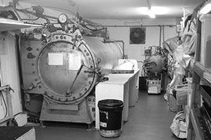 We have three different ovens of different sizes located in various areas of our factory. The ovens are used for mould preparation, low cost vacuum-only curing of parts and post curing of tools, patterns or components. Generally speaking, parts that are oven cured at 1 atmosphere pressure suffer a reduction in mechanical properties of about 15%, increased weight by up to 10% and dont have the same quality of surface finish when compared with those that are autoclave cured.