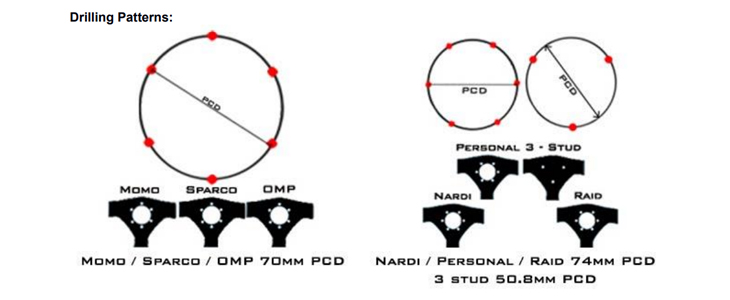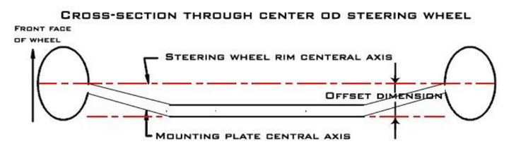 | Steering Wheel | Rim Section | Dia. (mm) | Set-back (mm) | Wheel Mount Offset from Centrepoint (mm) | Approx Mass (g) |
